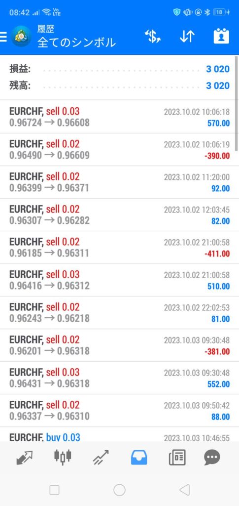 CAPTAIN EA 10/2~10/6 FX自動売買結果+3,020円