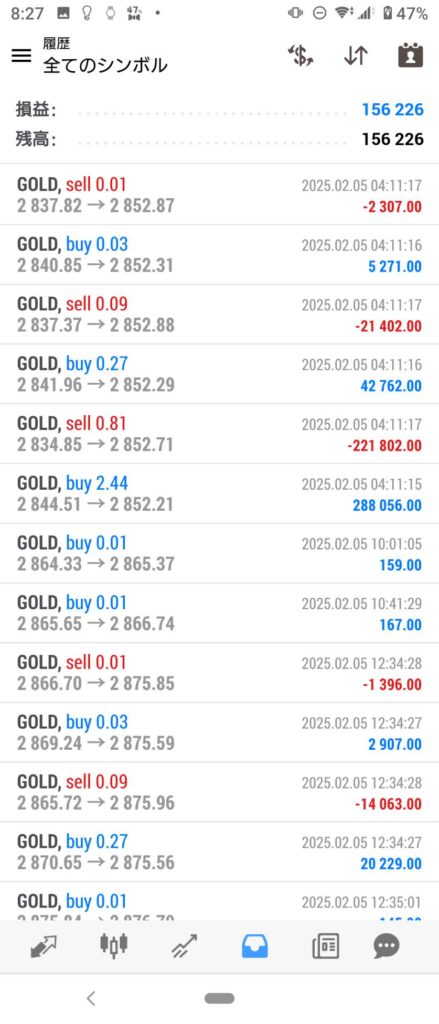 CLAW EA 2/3~2/7 FX自動売買結果+156,226円