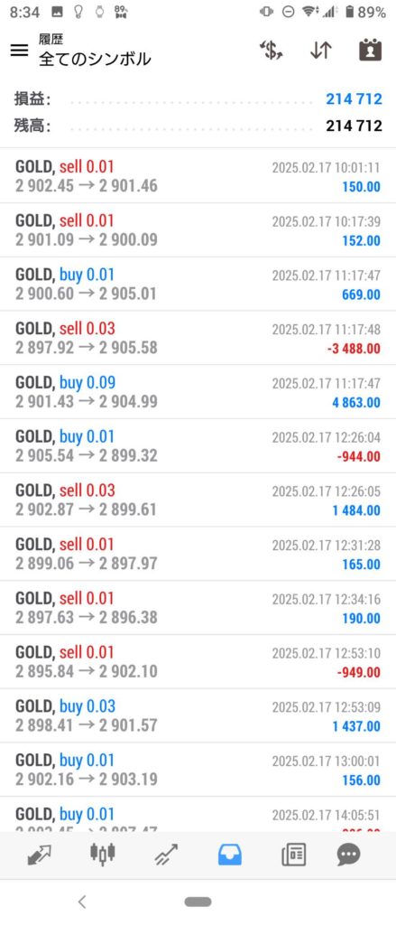 CLAW EA 2/17~2/21 FX自動売買結果+214,712円