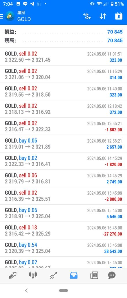 CLAW EA 5/6~5/10 FX自動売買結果+70,845円