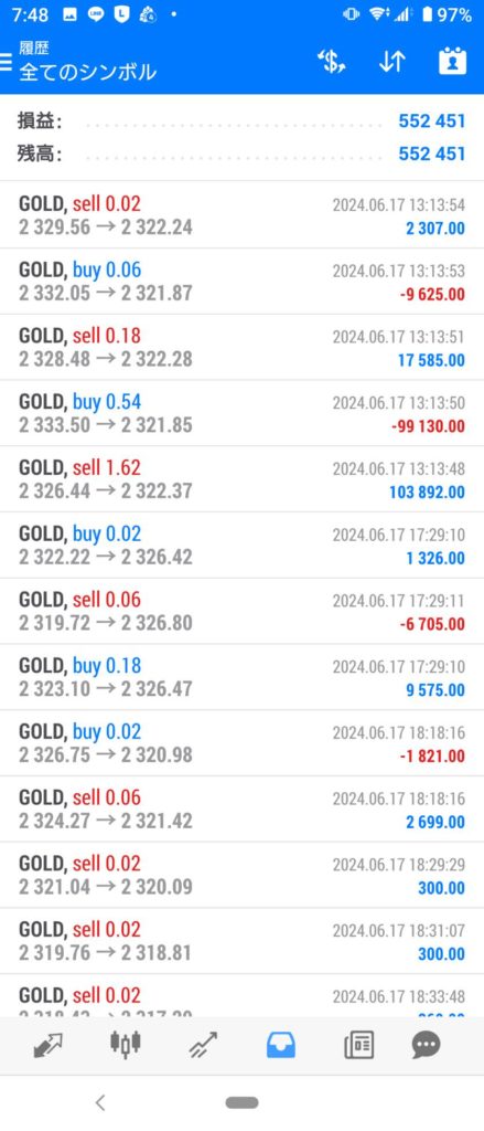 CLAW EA 6/17~6/21 FX自動売買結果+552,451円