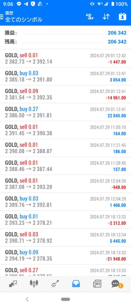 CLAW EA 7/29~8/2 FX自動売買結果+206,342円