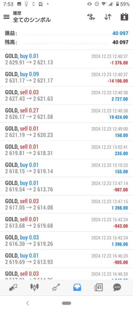 CLAW EA 12/23~12/27 FX自動売買結果+40,097円