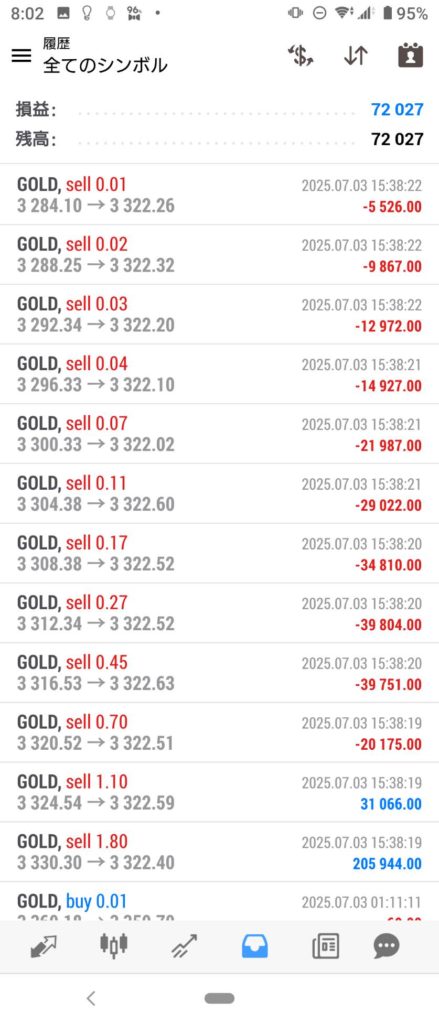 ETERNAL EA 6/30~7/4 FX自動売買結果+72,027円