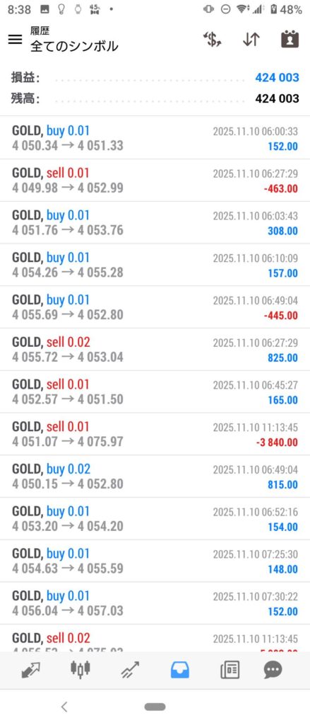ETERNAL EA 11/10~11/14 FX自動売買結果+424,003円
