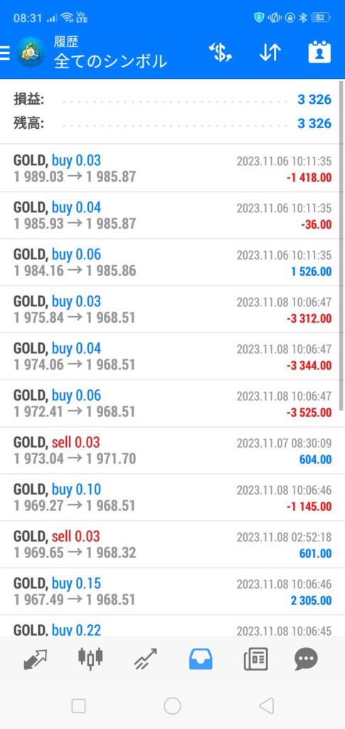 Falcon EA 11/6~11/10 FX自動売買結果+3,326円