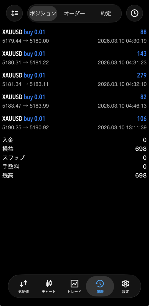 放置型EA FRIDAY 3/9~3/13 FX自動売買結果+698円