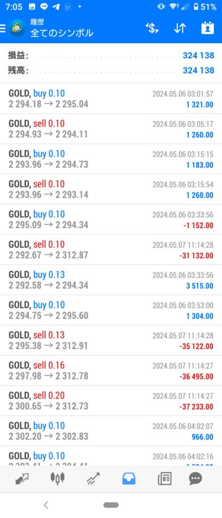 Guardian EA 5/6~5/10 FX自動売買結果+324,138円