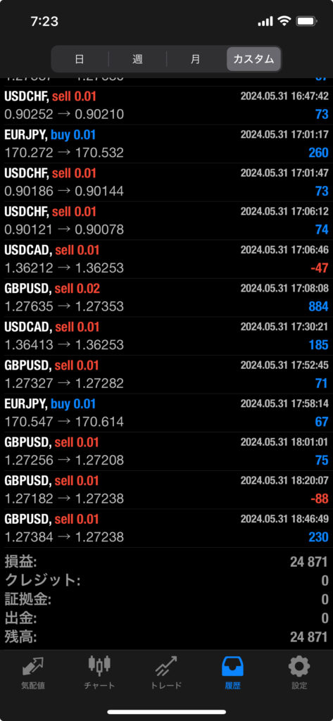 HULK EA 5/27~5/31 FX自動売買結果+24,871円 2024 6/01 運用結果 2024-06-01 ハルクは無料EAとしてプレゼントしています!ご希望の方は【ハルクEA希望】とメッセージ下さい! 怪物級の利益率ハルク!! ハルクの詳細ページ 無傷で利率680%達成!結果公開! 稼働条件 スタンダード口座:最低証拠金30万円 マイクロ口座:最低証拠金5万円 通貨ペアは複数通貨ペアを利用 FX業者はXM・IS6(EX口座可)・IronFX・HFMが使用可能。 目次ハルク 週間運用結果 結果 +24,871円 関連 運用結果 運用結果 よかったらシェアしてね! URLをコピーしました! URLをコピーしました! STAR EA 5/20~5/24 FX自動売買結果+145,924円 HULK EA改 5/27~5/31 FX自動売買結果+7,408円 関連記事 BOLTS EA 1/26~1/30 FX自動売買結果+212円 2026-01-31 FRIDAY EA 1/26~1/30 FX自動売買結果+1,538円 2026-01-31 SHIELD EA 1/26~1/30 FX自動売買結果+210,444円 2026-01-31 ETERNAL EA 1/26~1/30 FX自動売買結果+474,591円 2026-01-31 SWORD EA 1/26~1/30 FX自動売買結果+341,560円 2026-01-31 STAR EA 1/26~1/30 FX自動売買結果+329,665円 2026-01-31 朝活トレード!Buster EA 1/26~1/30 FX自動売買結果 2026-01-31 Guardian NEO 1/26~1/30 FX自動売買結果+101,661円 2026-01-31