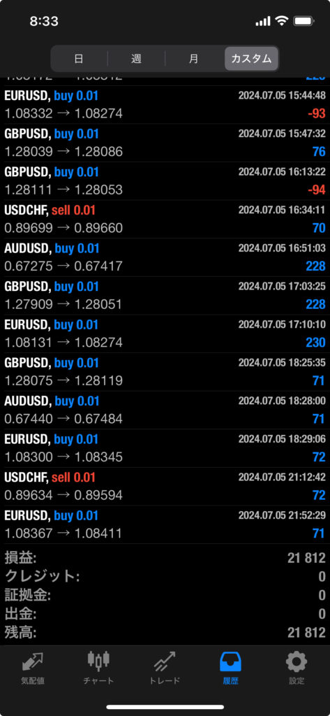 HULK EA 7/1~7/5 FX自動売買結果+21,812円 2024 7/06 運用結果 2024-07-06 ハルクは無料EAとしてプレゼントしています!ご希望の方は【ハルクEA希望】とメッセージ下さい! 怪物級の利益率ハルク!! ハルクの詳細ページ 無傷で利率680%達成!結果公開! 稼働条件 スタンダード口座:最低証拠金30万円 マイクロ口座:最低証拠金5万円 通貨ペアは複数通貨ペアを利用 FX業者はXM・IS6(EX口座可)・IronFX・HFMが使用可能。 目次ハルク 週間運用結果 結果 +21,812円 関連 運用結果 運用結果 よかったらシェアしてね! URLをコピーしました! URLをコピーしました! ETERNAL EA 6/24~6/28 FX自動売買結果+566,136円 HULK EA改 7/1~7/5 FX自動売買結果+6,084円 関連記事 BOLTS EA 1/26~1/30 FX自動売買結果+212円 2026-01-31 FRIDAY EA 1/26~1/30 FX自動売買結果+1,538円 2026-01-31 SHIELD EA 1/26~1/30 FX自動売買結果+210,444円 2026-01-31 ETERNAL EA 1/26~1/30 FX自動売買結果+474,591円 2026-01-31 SWORD EA 1/26~1/30 FX自動売買結果+341,560円 2026-01-31 STAR EA 1/26~1/30 FX自動売買結果+329,665円 2026-01-31 朝活トレード!Buster EA 1/26~1/30 FX自動売買結果 2026-01-31 Guardian NEO 1/26~1/30 FX自動売買結果+101,661円 2026-01-31