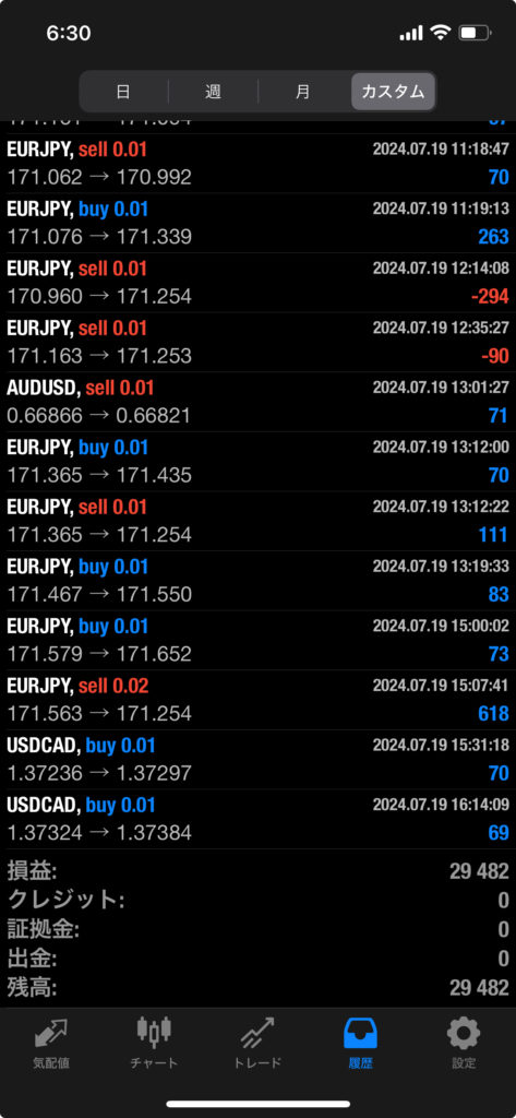 HULK EA 7/15~7/19 FX自動売買結果+29,482円 2024 7/20 運用結果 2024-07-20 ハルクは無料EAとしてプレゼントしています!ご希望の方は【ハルクEA希望】とメッセージ下さい! 怪物級の利益率ハルク!! ハルクの詳細ページ 無傷で利率680%達成!結果公開! 稼働条件 スタンダード口座:最低証拠金30万円 マイクロ口座:最低証拠金5万円 通貨ペアは複数通貨ペアを利用 FX業者はXM・IS6(EX口座可)・IronFX・HFMが使用可能。 目次ハルク 週間運用結果 結果 +29,482円 関連 運用結果 運用結果 よかったらシェアしてね! URLをコピーしました! URLをコピーしました! ETERNAL EA 7/8~7/12 FX自動売買結果+555,830円 HULK EA改 7/15~7/19 FX自動売買結果+6,600円 関連記事 BOLTS EA 1/26~1/30 FX自動売買結果+212円 2026-01-31 FRIDAY EA 1/26~1/30 FX自動売買結果+1,538円 2026-01-31 SHIELD EA 1/26~1/30 FX自動売買結果+210,444円 2026-01-31 ETERNAL EA 1/26~1/30 FX自動売買結果+474,591円 2026-01-31 SWORD EA 1/26~1/30 FX自動売買結果+341,560円 2026-01-31 STAR EA 1/26~1/30 FX自動売買結果+329,665円 2026-01-31 朝活トレード!Buster EA 1/26~1/30 FX自動売買結果 2026-01-31 Guardian NEO 1/26~1/30 FX自動売買結果+101,661円 2026-01-31