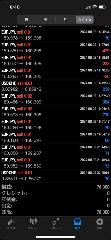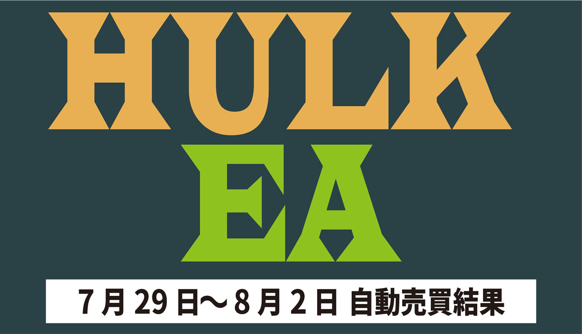 HULK EA 7/29~8/2 FX自動売買結果+78,000円 2024 8/03 運用結果 2024-08-03 ハルクは無料EAとしてプレゼントしています!ご希望の方は【ハルクEA希望】とメッセージ下さい! 怪物級の利益率ハルク!! ハルクの詳細ページ 無傷で利率680%達成!結果公開! 稼働条件 スタンダード口座:最低証拠金30万円 マイクロ口座:最低証拠金5万円 通貨ペアは複数通貨ペアを利用 FX業者はXM・IS6(EX口座可)・IronFX・HFMが使用可能。 目次ハルク 週間運用結果 結果 +78,000円 関連 運用結果 運用結果 よかったらシェアしてね! URLをコピーしました! URLをコピーしました! ETERNAL EA 7/22~7/26 FX自動売買結果 HULK EA改 7/29~8/2 FX自動売買結果+20,660円 関連記事 放置型EA SPIDER 3/16~3/20 FX自動売買結果-34,137円 2026-03-21 放置型EA BOLTS 3/16~3/20 FX自動売買結果+8,495円 2026-03-21 放置型EA FRIDAY 3/16~3/20 FX自動売買結果+11,483円 2026-03-21 SHIELD EA 3/16~3/20 FX自動売買結果+63,204円 2026-03-21 ETERNAL EA 3/16~3/20 FX自動売買結果+467,490円 2026-03-21 SWORD EA 3/16~3/20 FX自動売買結果+725,515円 2026-03-21 STAR EA 3/16~3/20 FX自動売買結果+3,183円 2026-03-21 Guardian NEO 3/16~3/20 FX自動売買結果+72,888円 2026-03-21