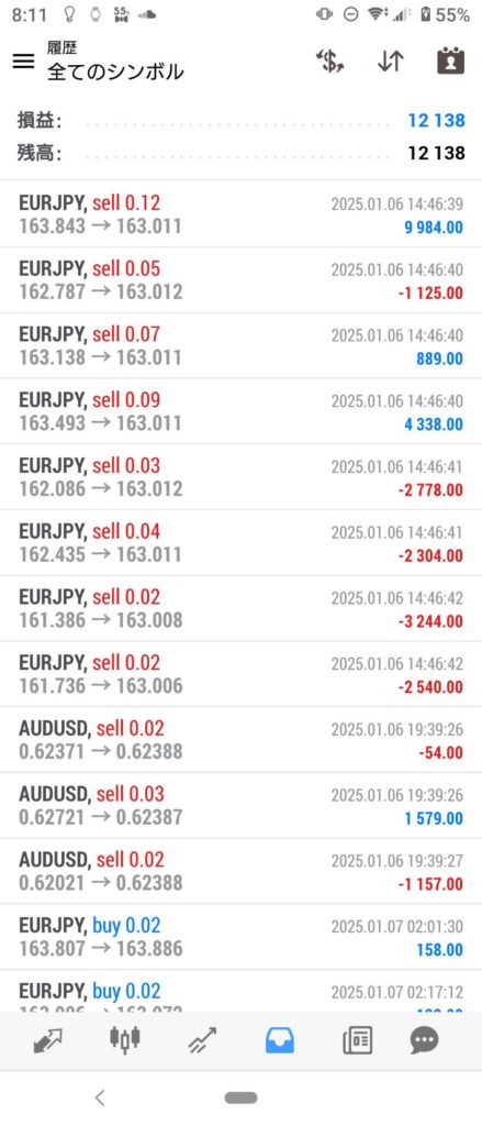 HULK改 EA 1/6~1/10 FX自動売買結果+12,138円 2025 1/11 運用結果 2025-01-11 ハルク改は無料EAとしてプレゼントしています!ご希望の方は【ハルク改EA希望】とメッセージ下さい! 怪物級の安定感ハルク改!! ハルク改の詳細ページ 未だに破綻ナシ 2年以上無敗!HULK改 EA! 稼働条件 スタンダード口座専用EA 最低証拠金25万円 通貨ペアは複数通貨ペアを利用 FX業者はXM・IS6(EX口座可)・IronFX・HFMが使用可能。 目次ハルク改 週間運用結果 結果 +12,138円 ハルク改の詳細ページ 関連 運用結果 運用結果 よかったらシェアしてね! URLをコピーしました! URLをコピーしました! INFINITY EA 12/30~1/3 FX自動売買結果+166,866円 THOR EA 1/6~1/10 FX自動売買結果+19,264円 関連記事 BOLTS EA 1/26~1/30 FX自動売買結果+212円 2026-01-31 FRIDAY EA 1/26~1/30 FX自動売買結果+1,538円 2026-01-31 SHIELD EA 1/26~1/30 FX自動売買結果+210,444円 2026-01-31 ETERNAL EA 1/26~1/30 FX自動売買結果+474,591円 2026-01-31 SWORD EA 1/26~1/30 FX自動売買結果+341,560円 2026-01-31 STAR EA 1/26~1/30 FX自動売買結果+329,665円 2026-01-31 朝活トレード!Buster EA 1/26~1/30 FX自動売買結果 2026-01-31 Guardian NEO 1/26~1/30 FX自動売買結果+101,661円 2026-01-31