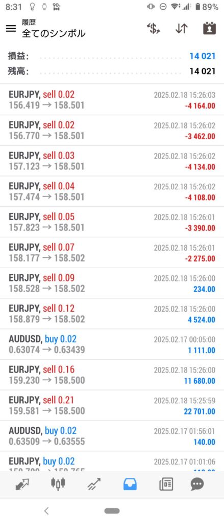 HULK改 EA 2/17~2/21 FX自動売買結果+14,021円 2025 2/22 運用結果 2025-02-22 ハルク改は無料EAとしてプレゼントしています!ご希望の方は【ハルク改EA希望】とメッセージ下さい! 怪物級の安定感ハルク改!! ハルク改の詳細ページ 稼働条件 スタンダード口座専用EA 最低証拠金25万円 通貨ペアは複数通貨ペアを利用 FX業者はXM・IS6(EX口座可)・IronFX・HFMが使用可能。 目次ハルク改 週間運用結果 結果 +14,021円 ハルク改の詳細ページ 関連 運用結果 運用結果 よかったらシェアしてね! URLをコピーしました! URLをコピーしました! SHIELD EA 2/10~2/14 FX自動売買結果+242,772円 THOR EA 2/17~2/21 FX自動売買結果+15,294円 関連記事 BOLTS EA 1/26~1/30 FX自動売買結果+212円 2026-01-31 FRIDAY EA 1/26~1/30 FX自動売買結果+1,538円 2026-01-31 SHIELD EA 1/26~1/30 FX自動売買結果+210,444円 2026-01-31 ETERNAL EA 1/26~1/30 FX自動売買結果+474,591円 2026-01-31 SWORD EA 1/26~1/30 FX自動売買結果+341,560円 2026-01-31 STAR EA 1/26~1/30 FX自動売買結果+329,665円 2026-01-31 朝活トレード!Buster EA 1/26~1/30 FX自動売買結果 2026-01-31 Guardian NEO 1/26~1/30 FX自動売買結果+101,661円 2026-01-31