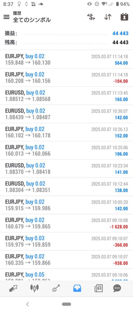 HULK改 EA 3/3~3/7 FX自動売買結果+44,443円 2025 3/08 運用結果 2025-03-08 ハルク改は無料EAとしてプレゼントしています!ご希望の方は【ハルク改EA希望】とメッセージ下さい! 怪物級の安定感ハルク改!! ハルク改の詳細ページ 稼働条件 スタンダード口座専用EA 最低証拠金25万円 通貨ペアは複数通貨ペアを利用 FX業者はXM・IS6(EX口座可)・IronFX・HFMが使用可能。 目次ハルク改 週間運用結果 結果 +44,443円 ハルク改の詳細ページ 関連 運用結果 運用結果 よかったらシェアしてね! URLをコピーしました! URLをコピーしました! SHIELD EA 2/24~2/28 FX自動売買結果+142,526円 THOR EA 3/3~3/7 FX自動売買結果+71,202円 関連記事 BOLTS EA 1/26~1/30 FX自動売買結果+212円 2026-01-31 FRIDAY EA 1/26~1/30 FX自動売買結果+1,538円 2026-01-31 SHIELD EA 1/26~1/30 FX自動売買結果+210,444円 2026-01-31 ETERNAL EA 1/26~1/30 FX自動売買結果+474,591円 2026-01-31 SWORD EA 1/26~1/30 FX自動売買結果+341,560円 2026-01-31 STAR EA 1/26~1/30 FX自動売買結果+329,665円 2026-01-31 朝活トレード!Buster EA 1/26~1/30 FX自動売買結果 2026-01-31 Guardian NEO 1/26~1/30 FX自動売買結果+101,661円 2026-01-31