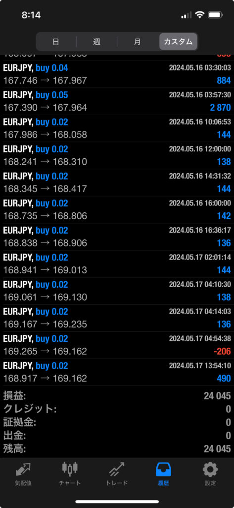 HULK EA改 5/13~5/17 FX自動売買結果+24,045円