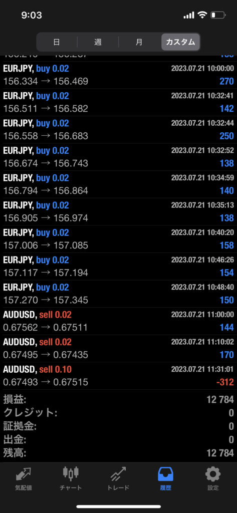 HULK EA改 7/17~7/21 FX自動売買結果+12,784円