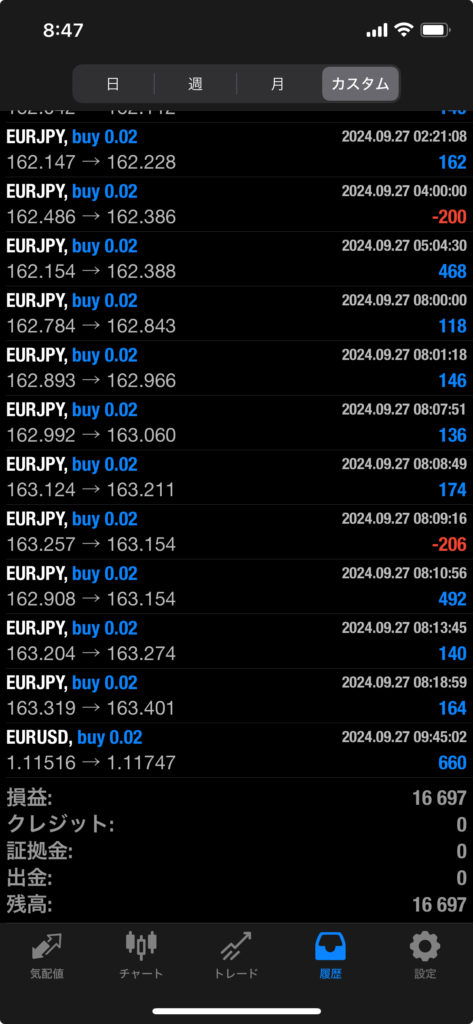 HULK改 EA 9/23~9/27 FX自動売買結果+16,697円 2024 9/28 運用結果 2024-09-28 ハルク改は無料EAとしてプレゼントしています!ご希望の方は【ハルク改EA希望】とメッセージ下さい! 怪物級の安定感ハルク改!! ハルク改の詳細ページ 未だに破綻ナシ 2年以上無敗!HULK改 EA! 稼働条件 スタンダード口座専用EA 最低証拠金25万円 通貨ペアは複数通貨ペアを利用 FX業者はXM・IS6(EX口座可)・IronFX・HFMが使用可能。 目次ハルク改 週間運用結果 結果 +16,697円 ハルク改の詳細ページ 関連 運用結果 運用結果 よかったらシェアしてね! URLをコピーしました! URLをコピーしました! INFINITY EA 9/16~9/20 FX自動売買結果+130,396円 THOR EA 9/23~9/27 FX自動売買結果+32,003円 関連記事 BOLTS EA 1/26~1/30 FX自動売買結果+212円 2026-01-31 FRIDAY EA 1/26~1/30 FX自動売買結果+1,538円 2026-01-31 SHIELD EA 1/26~1/30 FX自動売買結果+210,444円 2026-01-31 ETERNAL EA 1/26~1/30 FX自動売買結果+474,591円 2026-01-31 SWORD EA 1/26~1/30 FX自動売買結果+341,560円 2026-01-31 STAR EA 1/26~1/30 FX自動売買結果+329,665円 2026-01-31 朝活トレード!Buster EA 1/26~1/30 FX自動売買結果 2026-01-31 Guardian NEO 1/26~1/30 FX自動売買結果+101,661円 2026-01-31