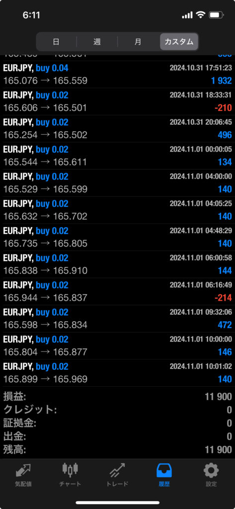 HULK改 EA 10/28~11/1 FX自動売買結果+11,900円 2024 11/02 運用結果 2024-11-02 ハルク改は無料EAとしてプレゼントしています!ご希望の方は【ハルク改EA希望】とメッセージ下さい! 怪物級の安定感ハルク改!! ハルク改の詳細ページ 未だに破綻ナシ 2年以上無敗!HULK改 EA! 稼働条件 スタンダード口座専用EA 最低証拠金25万円 通貨ペアは複数通貨ペアを利用 FX業者はXM・IS6(EX口座可)・IronFX・HFMが使用可能。 目次ハルク改 週間運用結果 結果 +11,900円 ハルク改の詳細ページ 関連 運用結果 運用結果 よかったらシェアしてね! URLをコピーしました! URLをコピーしました! INFINITY EA 10/21~10/25 FX自動売買結果+184,229円 THOR EA 10/28~11/1 FX自動売買結果+22,937円 関連記事 BOLTS EA 1/26~1/30 FX自動売買結果+212円 2026-01-31 FRIDAY EA 1/26~1/30 FX自動売買結果+1,538円 2026-01-31 SHIELD EA 1/26~1/30 FX自動売買結果+210,444円 2026-01-31 ETERNAL EA 1/26~1/30 FX自動売買結果+474,591円 2026-01-31 SWORD EA 1/26~1/30 FX自動売買結果+341,560円 2026-01-31 STAR EA 1/26~1/30 FX自動売買結果+329,665円 2026-01-31 朝活トレード!Buster EA 1/26~1/30 FX自動売買結果 2026-01-31 Guardian NEO 1/26~1/30 FX自動売買結果+101,661円 2026-01-31