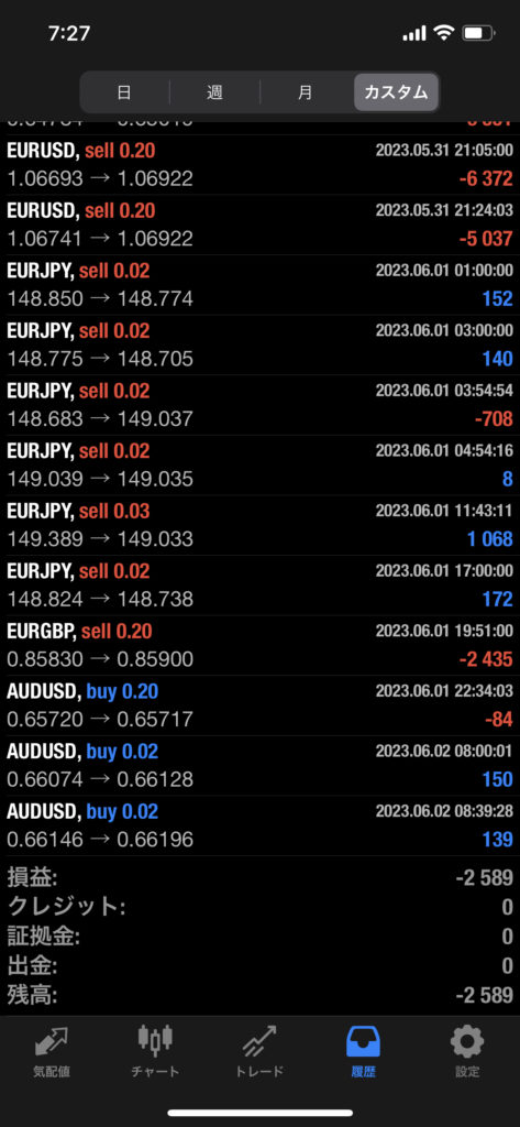 HULK EA改 5/29~6/2 FX自動売買結果-2,589円