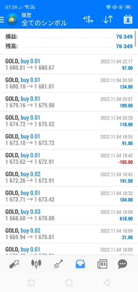 J.A.R.V.I.S EA 10/31~11/4 FX自動売買結果+76,349円