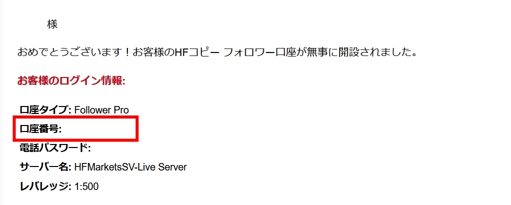 HFMから当コピトレの専用口座の情報が届きます。
