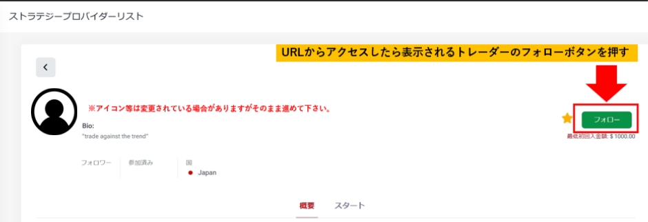 ここまで来たら放置稼働開始まであと一歩です!コピトレ設定を入力してフォロー確定を押せば完了!