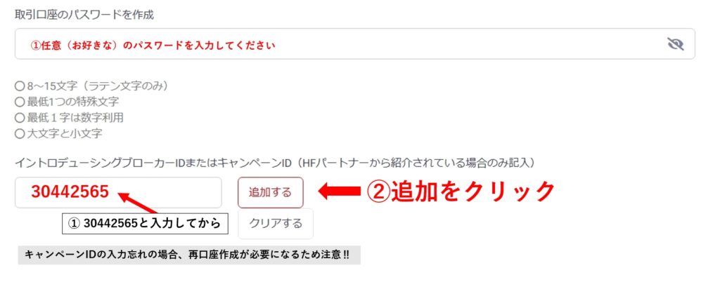 ①取引口座のパスワードを作成