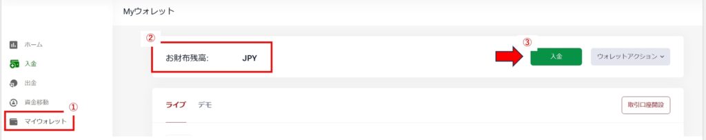 ログイン後、当コピトレで運用する資金の入金をお願い致します。