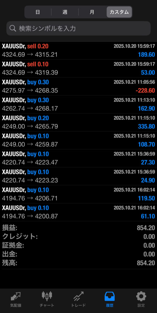 SHIELD.AI(コピトレ) 10/20~10/24 FX自動売買結果+854.2$