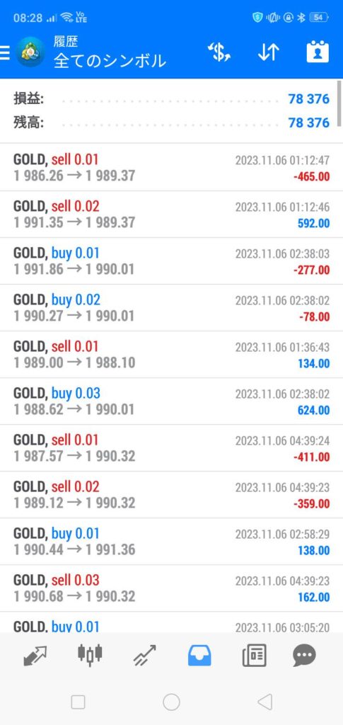 Spider EA 11/6~11/10 FX自動売買結果+78,376円