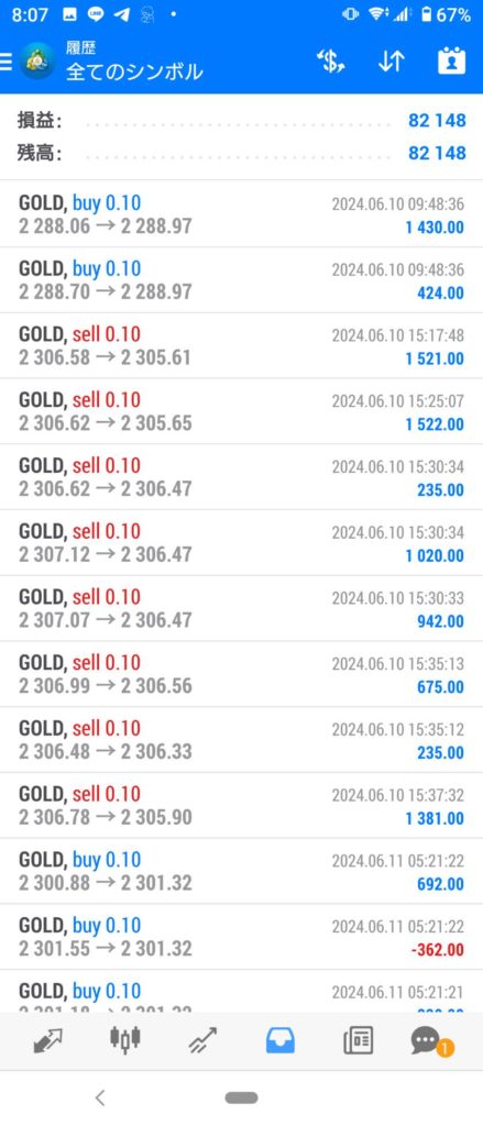 STAR EA 6/10~6/14 FX自動売買結果+82,148円