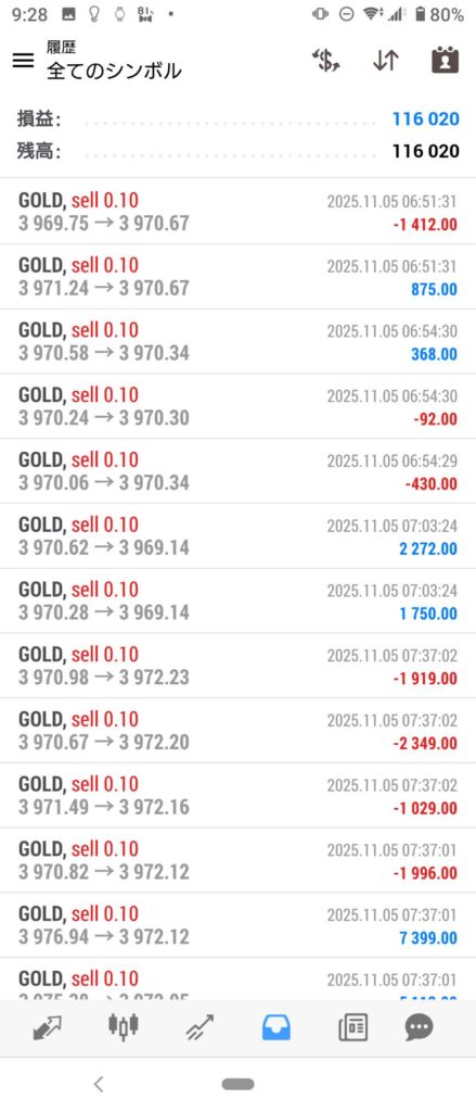 STAR EA 11/3~11/7 FX自動売買結果+116,020円