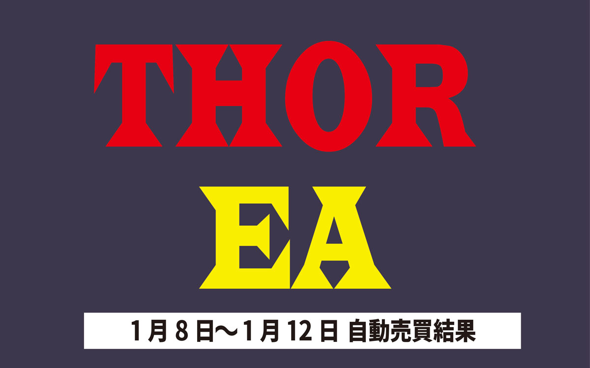 THOR EA 1/8~1/12 FX自動売買結果+14,612円 2024 1/13 運用結果 2024-01-13 ソーは無料EAとしてプレゼントしています!ご希望の方は【ソーEA希望】とメッセージ下さい! THOR EAの詳細ページ 稼働条件 スタンダード口座版:最低証拠金25万円 マイクロ口座版:証拠金5万円 THORは通貨ペアEURUSDのみ FX業者はXM・IS6(EX口座可)・IronFX・HFMを使用します。 目次THOR EA 週間利益結果 結果 +14,612円 関連 運用結果 運用結果 よかったらシェアしてね! URLをコピーしました! URLをコピーしました! HULK EA改 1/8~1/12 FX自動売買結果+17,550円 THOR Limit EA 1/8~1/12 FX自動売買結果+14,908円 関連記事 放置型EA SPIDER 3/23~3/27 FX自動売買結果 ノートレード 2026-03-28 放置型EA BOLTS 3/23~3/27 FX自動売買結果-27,640円 2026-03-28 放置型EA FRIDAY 3/23~3/27 FX自動売買結果+854円 2026-03-28 SHIELD EA 3/23~3/27 FX自動売買結果+522,271円 2026-03-28 ETERNAL EA 3/23~3/27 FX自動売買結果+1,549,117円 2026-03-28 SWORD EA 3/23~3/27 FX自動売買結果+583,763円 2026-03-28 STAR EA 3/23~3/27 FX自動売買結果+144,535円 2026-03-28 Guardian NEO 3/23~3/27 FX自動売買結果+448,049円 2026-03-28
