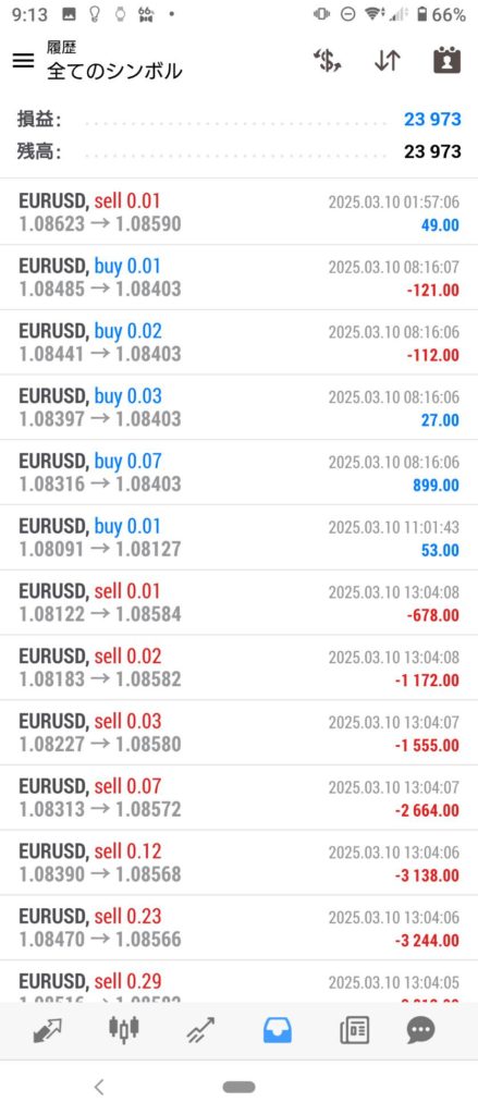 THOR EA 3/10~3/14 FX自動売買結果+23,973円 2025 3/15 運用結果 2025-03-15 ソーは無料EAとしてプレゼントしています!ご希望の方は【ソーEA希望】とメッセージ下さい! THOR EAの詳細ページ 稼働条件 スタンダード口座版:最低証拠金25万円 マイクロ口座版:証拠金5万円 THORは通貨ペアEURUSDのみ FX業者はXM・IS6(EX口座可)・IronFX・HFMを使用します。 目次THOR EA 週間利益結果 結果 +23,973円 関連 運用結果 運用結果 よかったらシェアしてね! URLをコピーしました! URLをコピーしました! HULK改 EA 3/10~3/14 FX自動売買結果+12,181円 Jericho EA 3/10~3/14 FX自動売買結果+275,278円 関連記事 BOLTS EA 1/26~1/30 FX自動売買結果+212円 2026-01-31 FRIDAY EA 1/26~1/30 FX自動売買結果+1,538円 2026-01-31 SHIELD EA 1/26~1/30 FX自動売買結果+210,444円 2026-01-31 ETERNAL EA 1/26~1/30 FX自動売買結果+474,591円 2026-01-31 SWORD EA 1/26~1/30 FX自動売買結果+341,560円 2026-01-31 STAR EA 1/26~1/30 FX自動売買結果+329,665円 2026-01-31 朝活トレード!Buster EA 1/26~1/30 FX自動売買結果 2026-01-31 Guardian NEO 1/26~1/30 FX自動売買結果+101,661円 2026-01-31