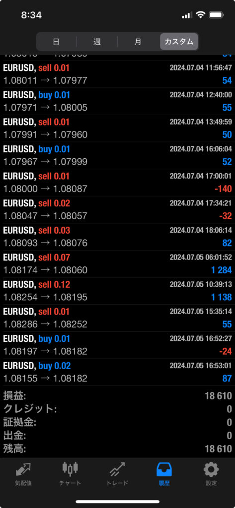 THOR EA 7/1~7/5 FX自動売買結果+18,610円 2024 7/06 運用結果 2024-07-06 ソーは無料EAとしてプレゼントしています!ご希望の方は【ソーEA希望】とメッセージ下さい! THOR EAの詳細ページ 稼働条件 スタンダード口座版:最低証拠金25万円 マイクロ口座版:証拠金5万円 THORは通貨ペアEURUSDのみ FX業者はXM・IS6(EX口座可)・IronFX・HFMを使用します。 目次THOR EA 週間利益結果 結果 +18,610円 関連 運用結果 運用結果 よかったらシェアしてね! URLをコピーしました! URLをコピーしました! HULK EA改 7/1~7/5 FX自動売買結果+6,084円 THOR Limit EA 7/1~7/5 FX自動売買結果+13,945円 関連記事 BOLTS EA 1/26~1/30 FX自動売買結果+212円 2026-01-31 FRIDAY EA 1/26~1/30 FX自動売買結果+1,538円 2026-01-31 SHIELD EA 1/26~1/30 FX自動売買結果+210,444円 2026-01-31 ETERNAL EA 1/26~1/30 FX自動売買結果+474,591円 2026-01-31 SWORD EA 1/26~1/30 FX自動売買結果+341,560円 2026-01-31 STAR EA 1/26~1/30 FX自動売買結果+329,665円 2026-01-31 朝活トレード!Buster EA 1/26~1/30 FX自動売買結果 2026-01-31 Guardian NEO 1/26~1/30 FX自動売買結果+101,661円 2026-01-31