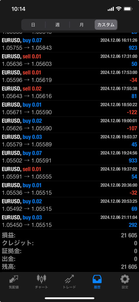 THOR EA 12/2~12/6 FX自動売買結果+21,605円 2024 12/07 運用結果 2024-12-07 ソーは無料EAとしてプレゼントしています!ご希望の方は【ソーEA希望】とメッセージ下さい! THOR EAの詳細ページ 稼働条件 スタンダード口座版:最低証拠金25万円 マイクロ口座版:証拠金5万円 THORは通貨ペアEURUSDのみ FX業者はXM・IS6(EX口座可)・IronFX・HFMを使用します。 目次THOR EA 週間利益結果 結果 +21,605円 関連 運用結果 運用結果 よかったらシェアしてね! URLをコピーしました! URLをコピーしました! HULK改 EA 12/2~12/6 FX自動売買結果+14,006円 THOR Limit EA 12/2~12/6 FX自動売買結果+13,066円 関連記事 BOLTS EA 1/26~1/30 FX自動売買結果+212円 2026-01-31 FRIDAY EA 1/26~1/30 FX自動売買結果+1,538円 2026-01-31 SHIELD EA 1/26~1/30 FX自動売買結果+210,444円 2026-01-31 ETERNAL EA 1/26~1/30 FX自動売買結果+474,591円 2026-01-31 SWORD EA 1/26~1/30 FX自動売買結果+341,560円 2026-01-31 STAR EA 1/26~1/30 FX自動売買結果+329,665円 2026-01-31 朝活トレード!Buster EA 1/26~1/30 FX自動売買結果 2026-01-31 Guardian NEO 1/26~1/30 FX自動売買結果+101,661円 2026-01-31