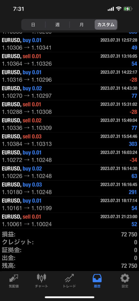 THOR EA 2023年7月 月間FX自動売買結果+72,750円