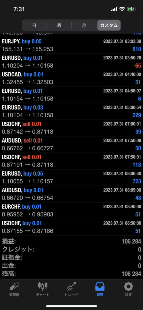 THOR Limit EA 2023年7月 月間FX自動売買結果+106,284円